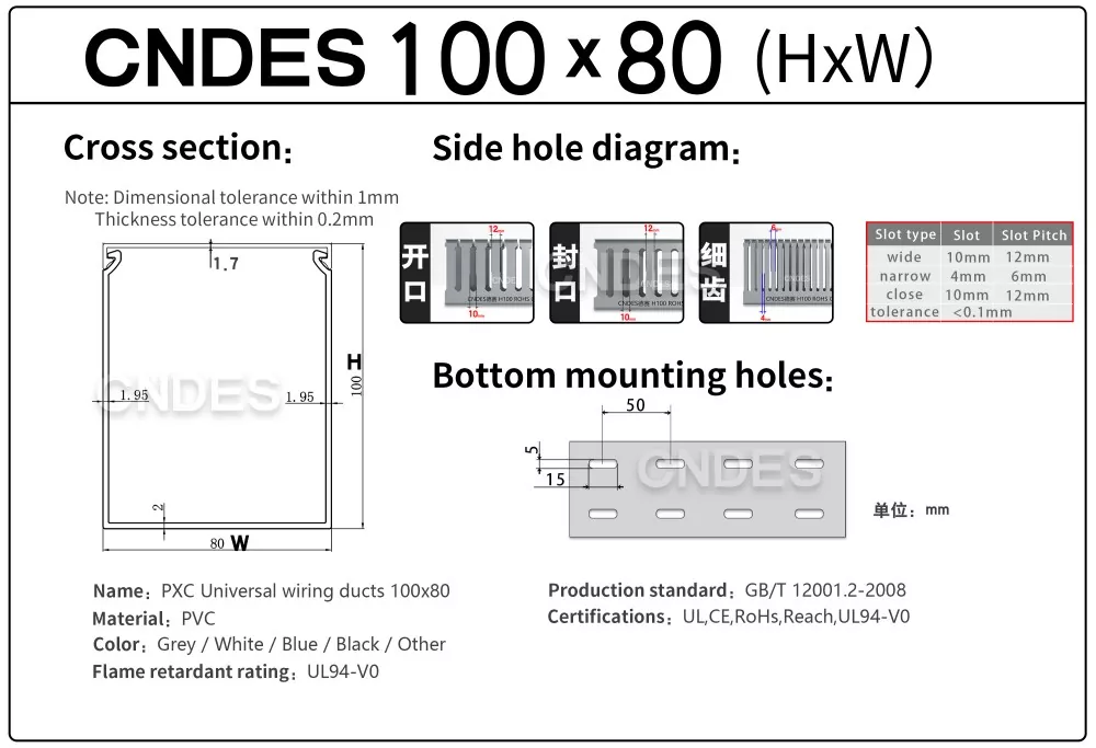 100×80 নমনীয় স্লটেড পিভিসি তারের নালী একটি 100 মিমি প্রস্থ এবং 80 মিমি উচ্চতার সাথে, এই তারের নালীটি এর জন্য আদর্শ: