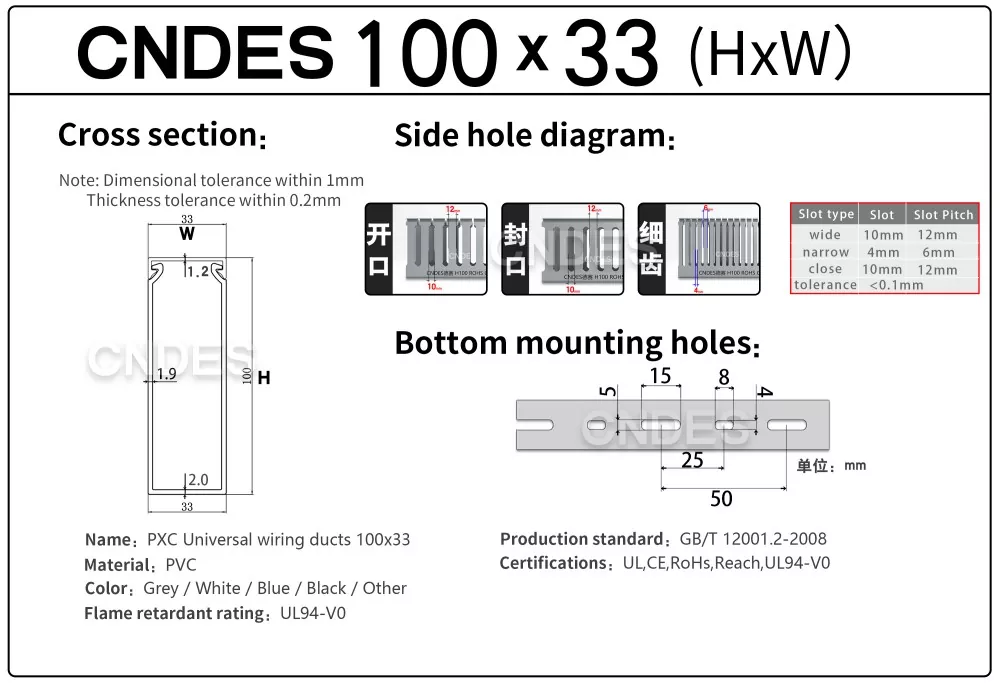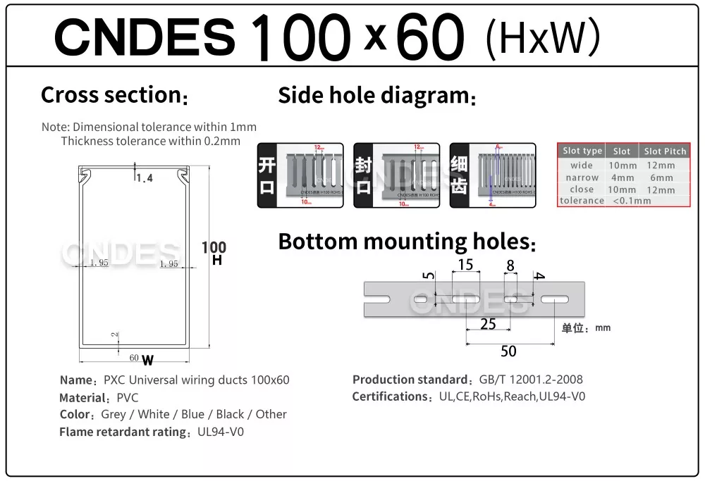 CNDES হল 24 বছরের অভিজ্ঞতা সহ একটি পেশাদার তারের ট্রে প্রস্তুতকারক, কাস্টমাইজড 100mm উচ্চতা ওপেন স্লট PVC এনক্লোসার ওয়্যারিং ডাক্ট উৎপাদনে বিশেষীকরণ করে৷ এখানে, আমরা আমাদের 100 মিমি উচ্চ তারের ট্রে সিরিজের পণ্যগুলিকে পরিচয় করিয়ে দেব।