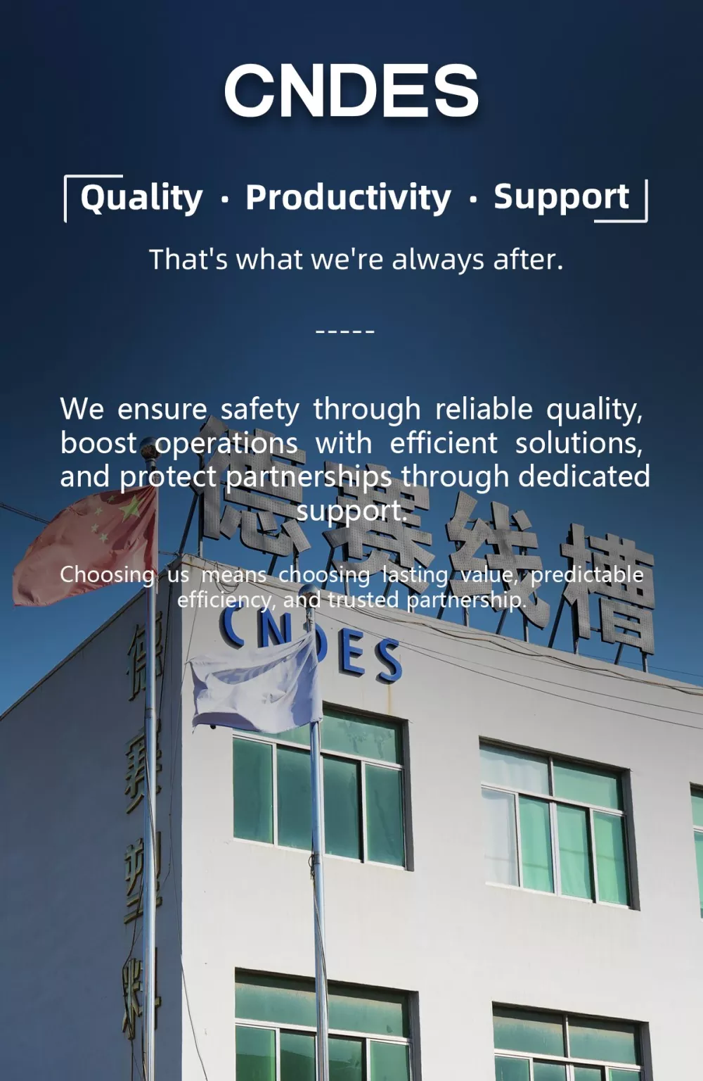 CNDES তারের নালী সরবরাহের জন্য আপনার নির্ভরযোগ্য অংশীদার হতে প্রতিশ্রুতিবদ্ধ! আপনার যদি অন্য কোন প্রশ্ন থাকে, যোগাযোগ করতে বিনা দ্বিধায়!