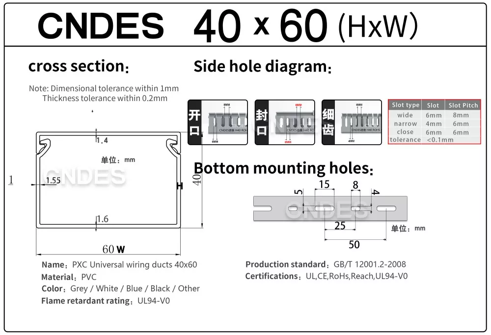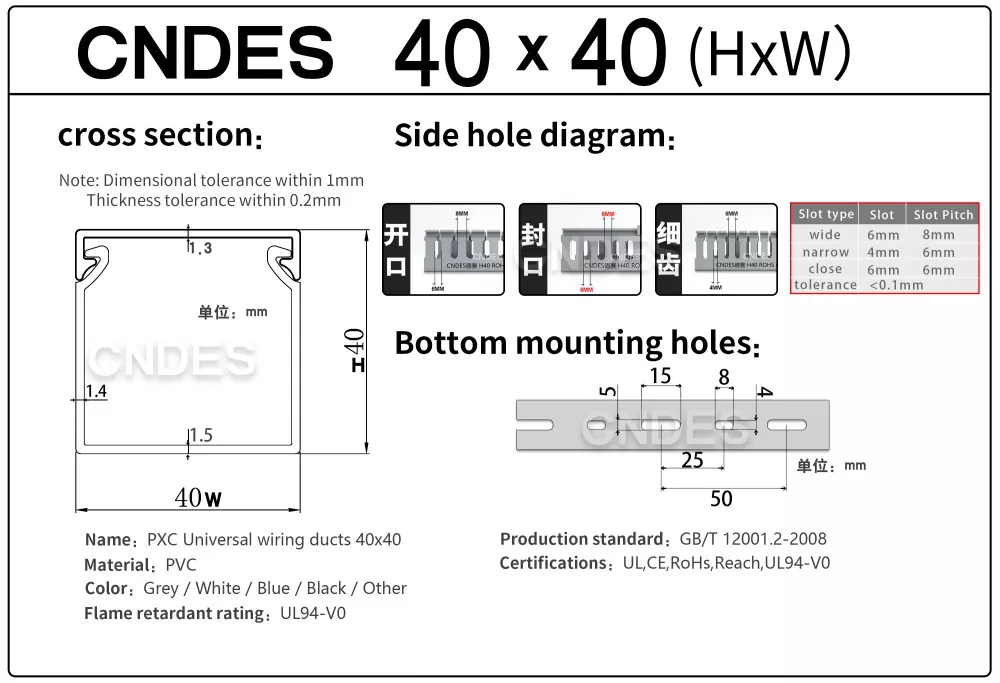 CNDES হল শীর্ষস্থানীয় স্লটেড পিভিসি ওয়্যারিং রেসওয়ে ডাক্ট নির্মাতা এবং সরবরাহকারী। এখানে আমরা 40*25, 40*30, 40*35, 40*40, এবং 40*60 সহ আমাদের 40mm-উচ্চতার তারের ট্রে পরিচয় করিয়ে দেব।
