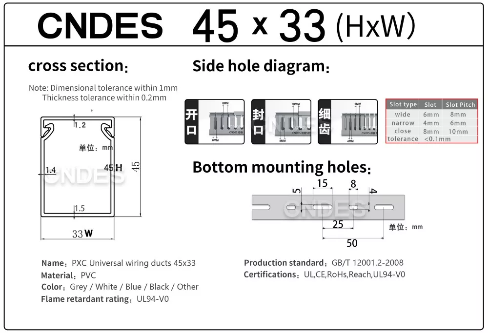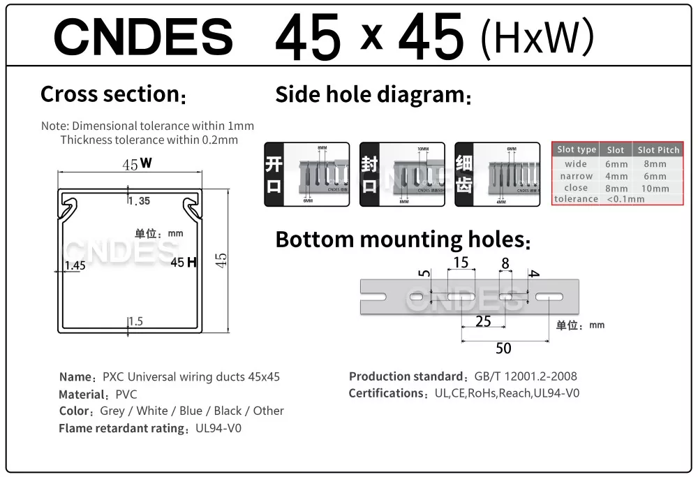 CNDES থেকে কাস্টমাইজড 45 মিমি উচ্চতার স্লটেড পিভিসি ওয়্যার কভার ডাক্টের সাথে পরিচয় করিয়ে দিচ্ছে, বিভিন্ন অ্যাপ্লিকেশনে কার্যকর তারের ব্যবস্থাপনার জন্য আপনার সমাধান। আপনি একটি নতুন বৈদ্যুতিক প্যানেল ডিজাইন করছেন, আপনার মেশিনের ওয়্যারিং সেটআপের উন্নতি করছেন বা আপনার বাড়ির বৈদ্যুতিক সিস্টেমকে উন্নত করছেন না কেন, আমাদের উচ্চতা স্লটেড পিভিসি ওয়্যার কভার ডাক্ট কার্যকারিতা এবং নান্দনিক আবেদনের নিখুঁত ভারসাম্য প্রদান করে।