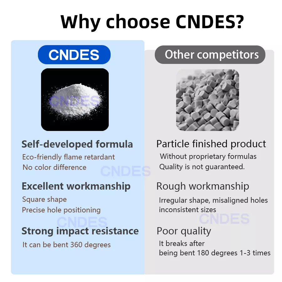 যখন স্ট্যান্ডার্ড ক্যাবল ট্রে জটিল ওয়্যারিং harnesses মিটমাট করতে ব্যর্থ হয়, CNDES কাস্টমাইজড 80×80 স্লটেড PVC সুইচবোর্ড ওয়্যারিং ডাক্ট আপনার ভাল পছন্দ। 80mm*80mm এর একটি বড় অভ্যন্তরীণ স্থান সহ, এটি বিশেষভাবে ডেটা সেন্টার ব্যাকবোন ক্যাবলিং, ইন্ডাস্ট্রিয়াল ইকুইপমেন্ট পাওয়ার ক্লাস্টার এবং বৃহৎ কন্ট্রোল ক্যাবিনেটে সেন্ট্রালাইজড ওয়্যারিং-এর মতো উচ্চ চাহিদার পরিস্থিতির জন্য ডিজাইন করা হয়েছে। এটি সহজে মিটমাট করে এবং বিপুল সংখ্যক তারের সংগঠিত করে, বিশৃঙ্খলা এবং যানজটকে একবার এবং সকলের জন্য বিদায় করে।