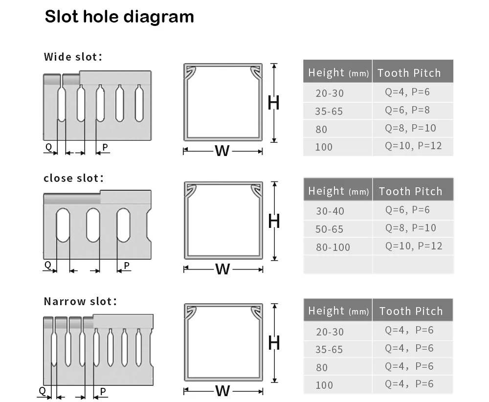 আমাদের কোম্পানি দ্বারা উত্পাদিত কাস্টমাইজড হোয়াইট স্লটেড পিভিসি ওয়্যারিং ডাক্টগুলি রূপালী সাদা হওয়ার জন্য ডিফল্ট হয়েছে, তবে এটি খাঁটি সাদা বা অফ-সাদা হতেও কাস্টমাইজ করা যেতে পারে। আমরা আপনার নির্বাচনের জন্য প্রশস্ত স্লট, সরু স্লট, ক্লোজ স্লট এবং কঠিন প্রাচীরের মতো স্লট প্রোফাইল অফার করি।